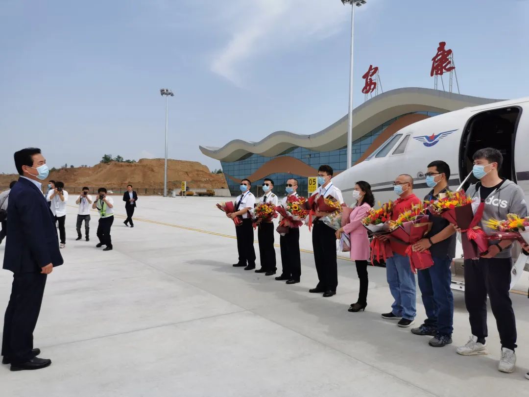 安康市委副書(shū)記、市長(zhǎng)、安康機(jī)場(chǎng)遷建工程聯(lián)合指揮部總指揮趙俊民與校飛機(jī)組機(jī)長(zhǎng)、簽派員、校驗(yàn)員、機(jī)務(wù)員——握手,感謝機(jī)組人員在首都新冠肺炎疫情尚未全 面解除的情況下,勇敢擔(dān)當(dāng)主動(dòng)執(zhí)行安康機(jī)場(chǎng)校飛任務(wù)。趙俊民說(shuō),安康機(jī)場(chǎng)是全市大體量的平面工程,是打造秦巴區(qū)域綜合交通樞紐的重點(diǎn)項(xiàng)目,寄托了304萬(wàn)安康人民的藍(lán)天夢(mèng)想,承載著助力脫貧攻堅(jiān)、助推區(qū)域經(jīng)濟(jì)社會(huì)高質(zhì)量發(fā)展的希望。開(kāi)工以來(lái),機(jī)場(chǎng)建設(shè)團(tuán)隊(duì)踐行人文智慧綠色平安的理念,打造了極具特色的支線機(jī)場(chǎng)。特別是面對(duì)突如其來(lái)的新冠肺炎疫情,沉著應(yīng)對(duì)、積極防控,全員不休假、全線不停工,打贏了疫情防控和機(jī)場(chǎng)建設(shè)兩場(chǎng)硬仗,為機(jī)場(chǎng)早日通航搶回了寶貴的時(shí)間。